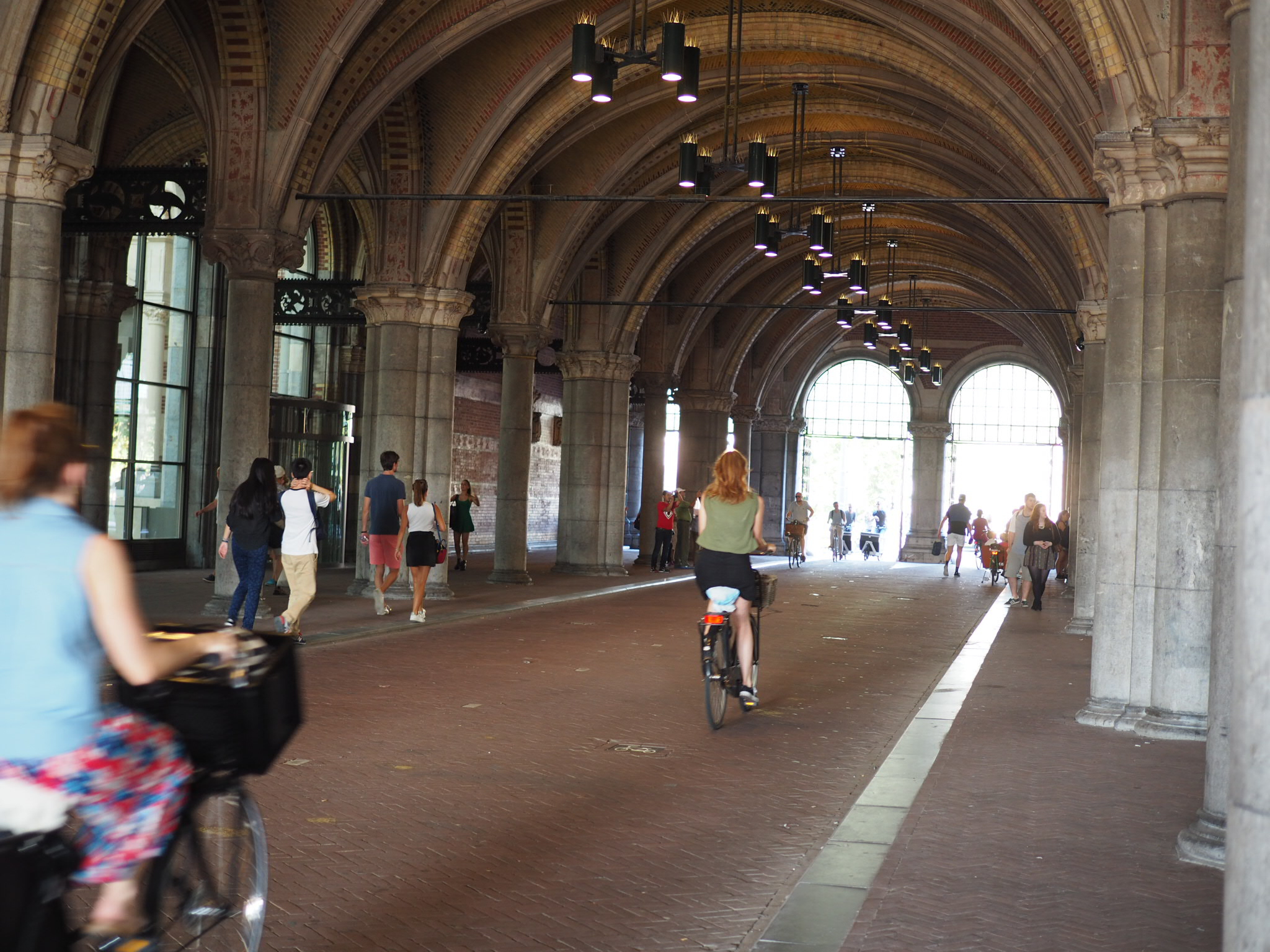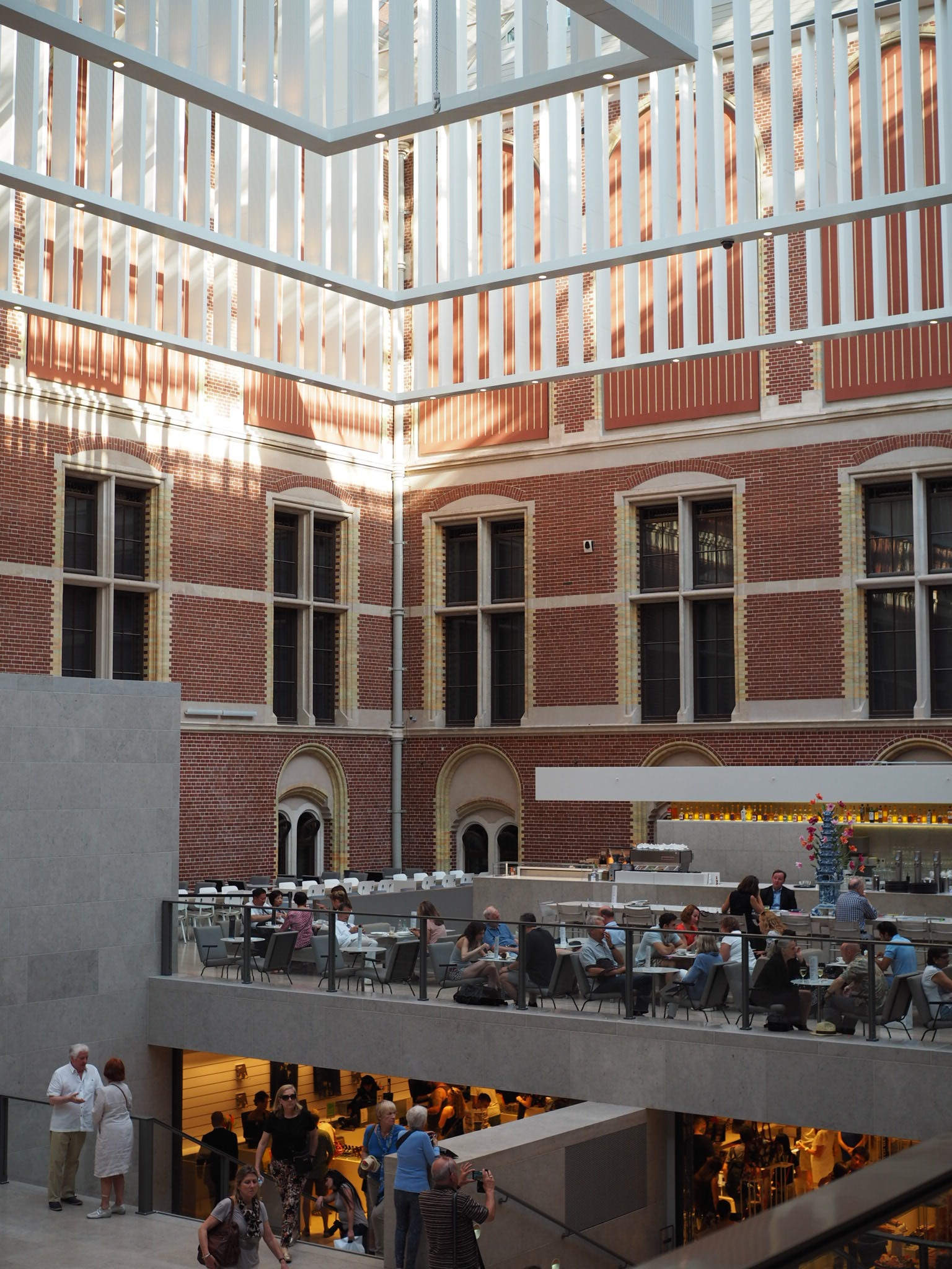 Päivän viimeinen kohteeni oli Rijksmuseum, joka 10 vuotta kestäneen ja 375 miljoonaa euroa maksaneen kunnostus- ja laajennustyön jälkeen avattiin uudelleen vuonna 2013. Minulla ei ole vertailukohtaa aiempaan, mutta museon nykyistä uudistusta on paljon kehuttu. Vanhan sisäänkäynnin tilalle on rakennettu avara valopiha, josta löytyy kahvila sekä kirja- ja matkamuistokauppa. Museo on valtava ja ehdin sinne puolitoista tuntia ennen sulkemisaikaa, joten kävin katsomassa ainoastaan Kunniagallerian, josta löytyy muun muassa Rembrandtin ja Vermeerin töitä.