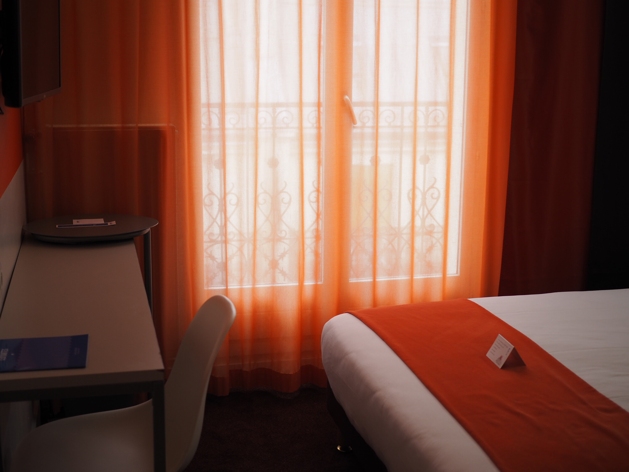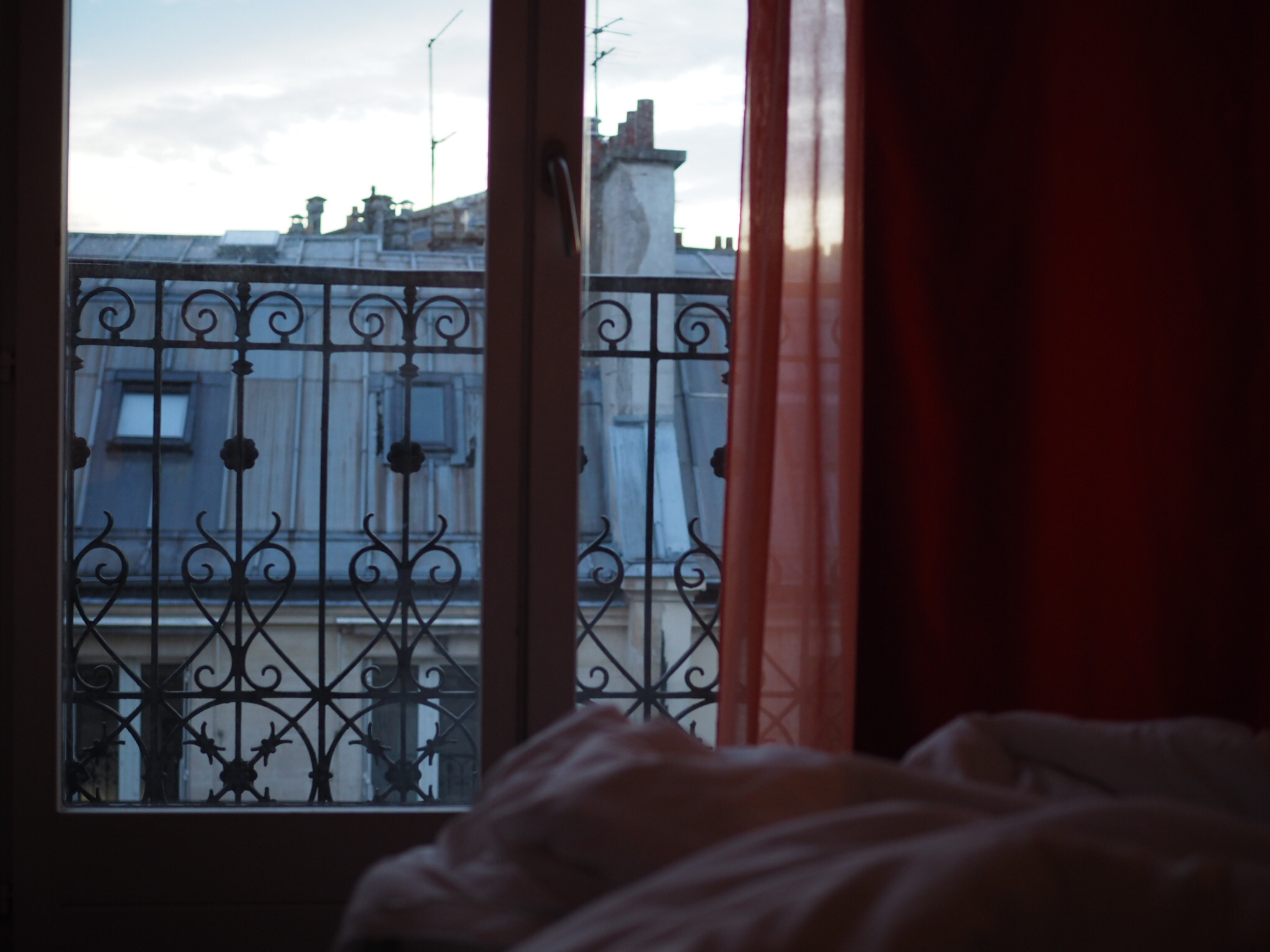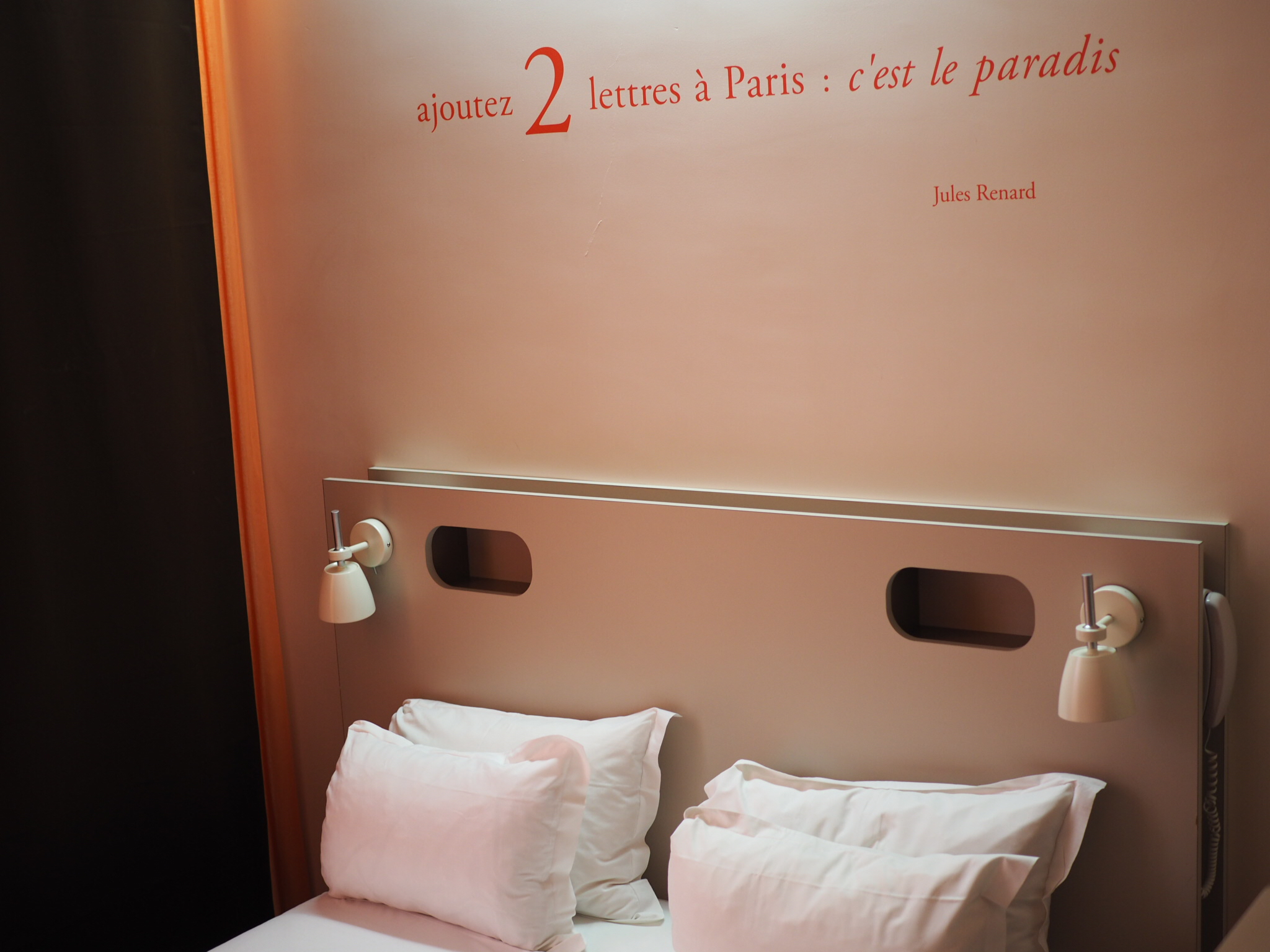 Kun vihdoin pääsin hotelliin ja huoneeseeni, ylimpään, kuudenteen kerrokseen, olin niin uupunut ”sata kiloisen” rinkan rahtaamisesta ja rautatieasemalla pyörimisestä, etten ihan heti niellyt seinällä tervehtivää tekstiä ”ajoutez 2 lettres à Paris: c’est le Paradis” (Jules Renard).