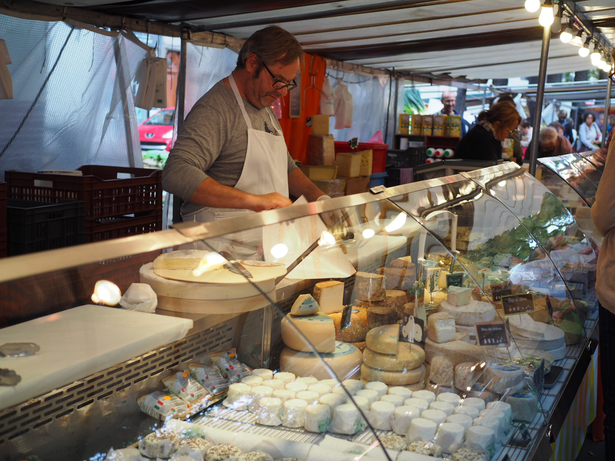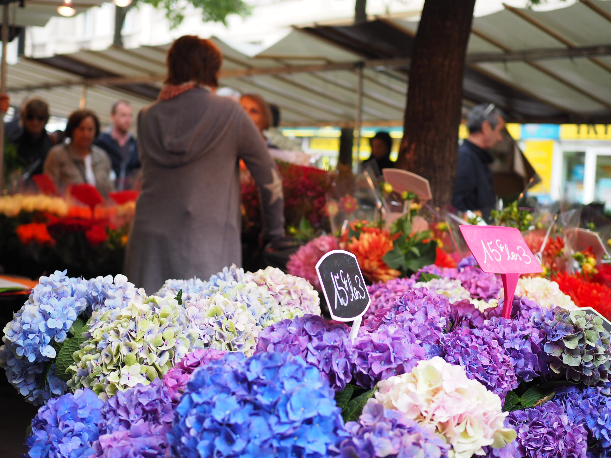 Lauantaiaamuna kävellessäni Romen metroasemalle pöllähdin keskelle paikallista katutoria. Metroaseman vieressä olevan Boulevard des Batignollesin välissä on kaistale, jonne oli pystytetty lukemattomia kojuja, joissa myytiin hedelmiä, juustoja, lihaa, kananmunia, kukkia… Kiertelin paikallisten joukossa, seurasin kaupankäyntiä ja napsin valokuvia. Olipa mukava yllätys osua paikalle näkemään ja kokemaan pariisilainen torielämä!
