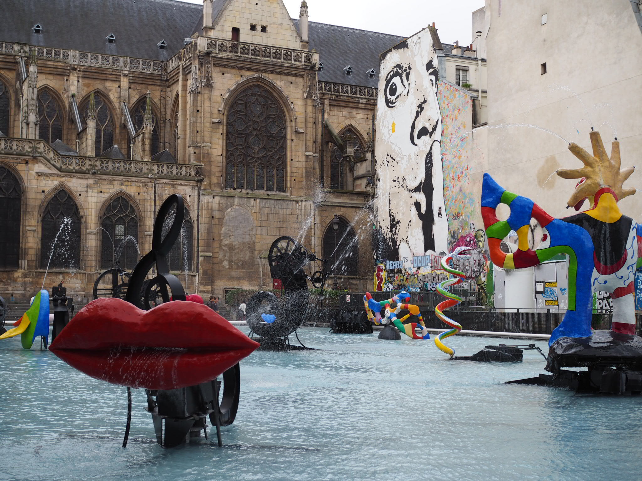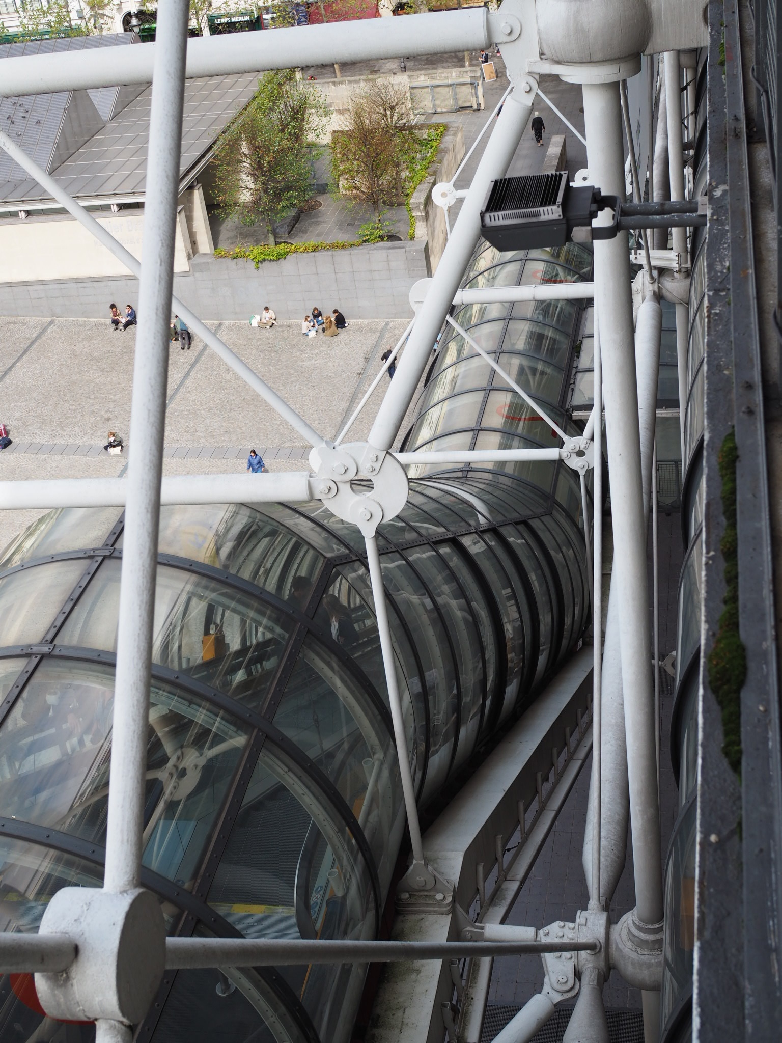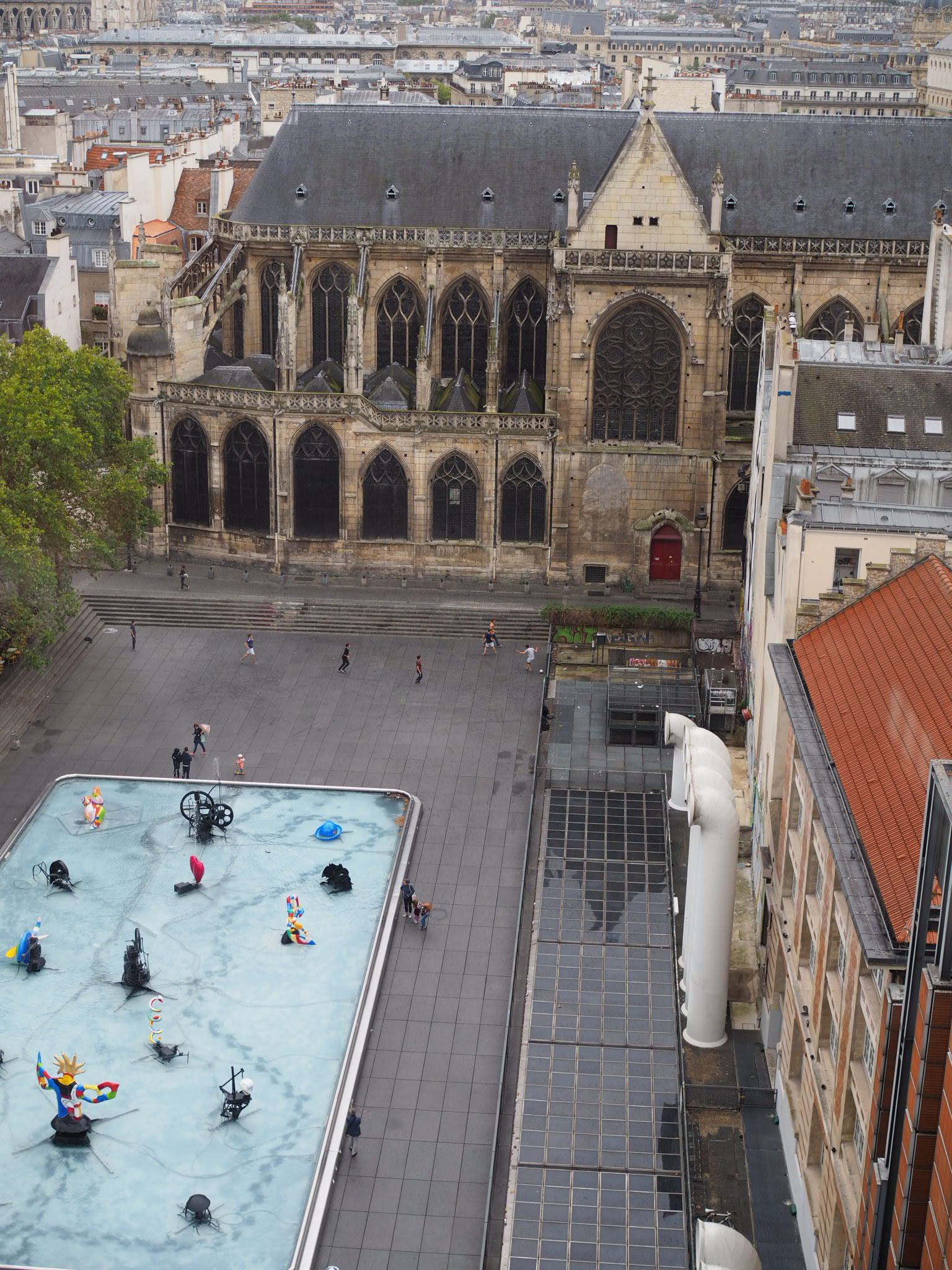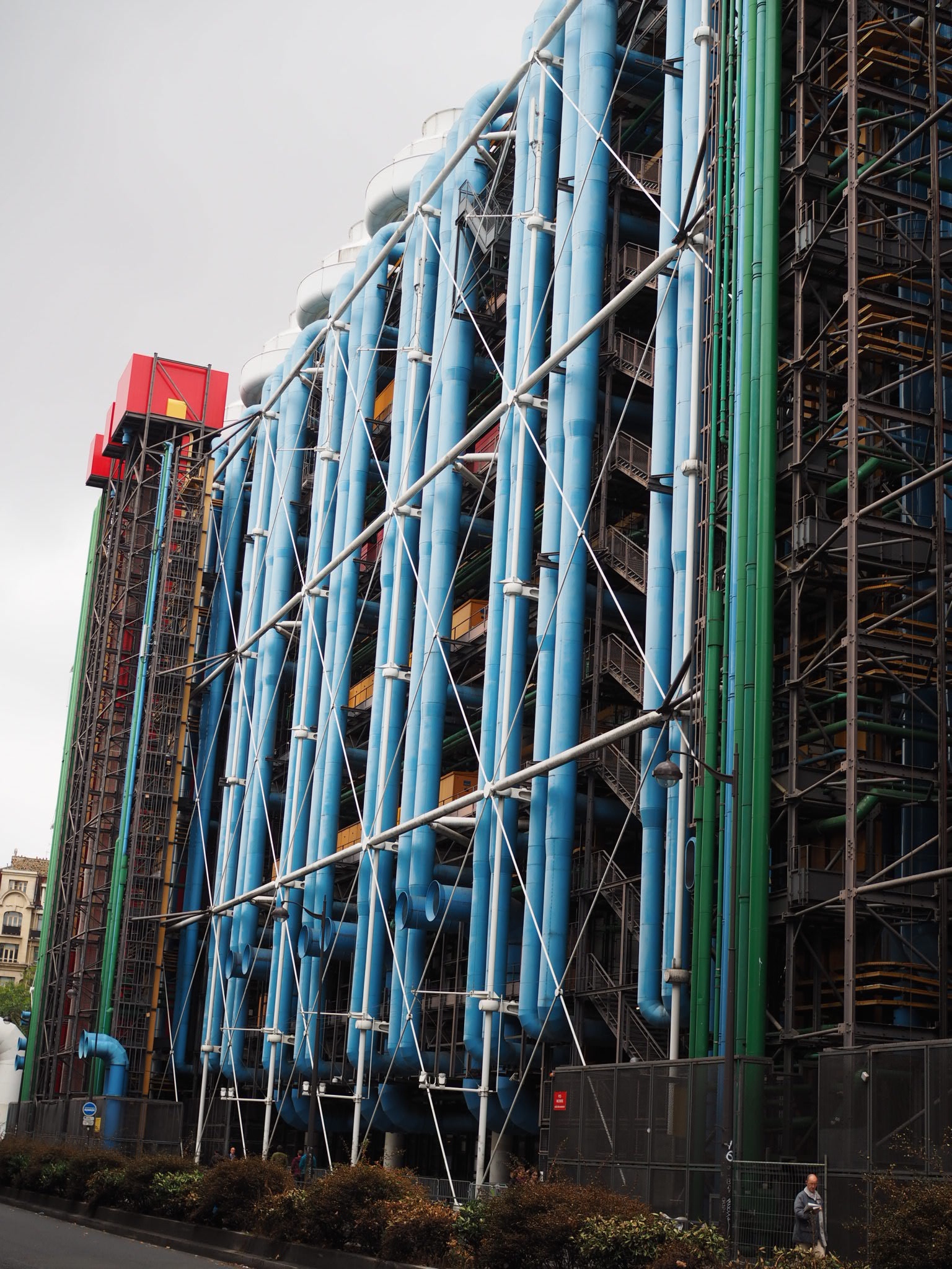 Torilta jatkoin metrolla modernin ja nykytaiteen museo Centre Pompidouun, jota ei voi olla huomaamatta, niin poikkeava rakennuksen arkkitehtuuri on katunäkymässä. Rakenteet on tarkoituksella jätetty näkyviin ja joka puolella on putkia, telineitä ja liukuportaita. Jokaisella putkella on myös oma käyttötarkoituksensa: siniset ovat ilmanvaihtoa varten, keltaiset sähkölinjoja, vihreät vesiputkia ja punaiset lämpöputkia. Rakennuksen ulkopuolella olevalla aukiolla sijaitsee Stravinsky-suihkulähde, josta löytyy Niki de Saint-Phallen värikkäitä veistoksia.