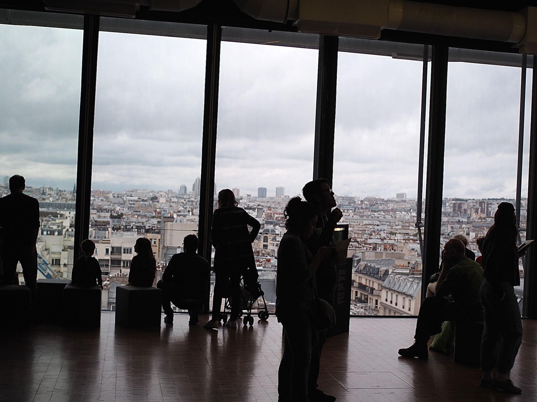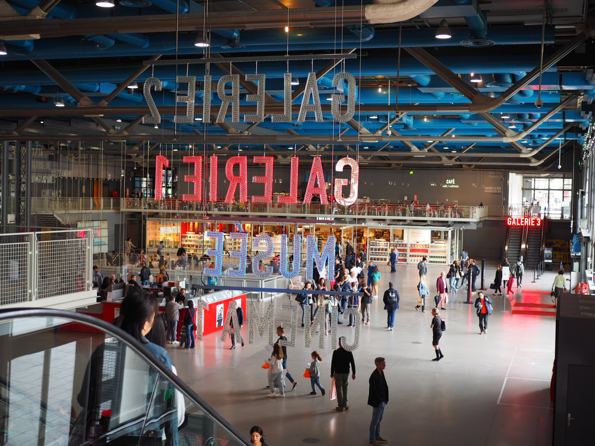 Pompidousta löytyy elokuvateatteri, kirjasto, designkeskus, musiikkilaboratorio ja museo. Saavuin pääoville puoli tuntia Pompidoun avautumisesta ja museon ulkopuolella oli jo jonoa. Museon kokoelma kattaa yli 100 000 teosta, sisältäen kuvataidetta, piirroksia, valokuvia, uutta mediaa, kokeellista elokuvaa, arkkitehtuuria ja muotoilua.