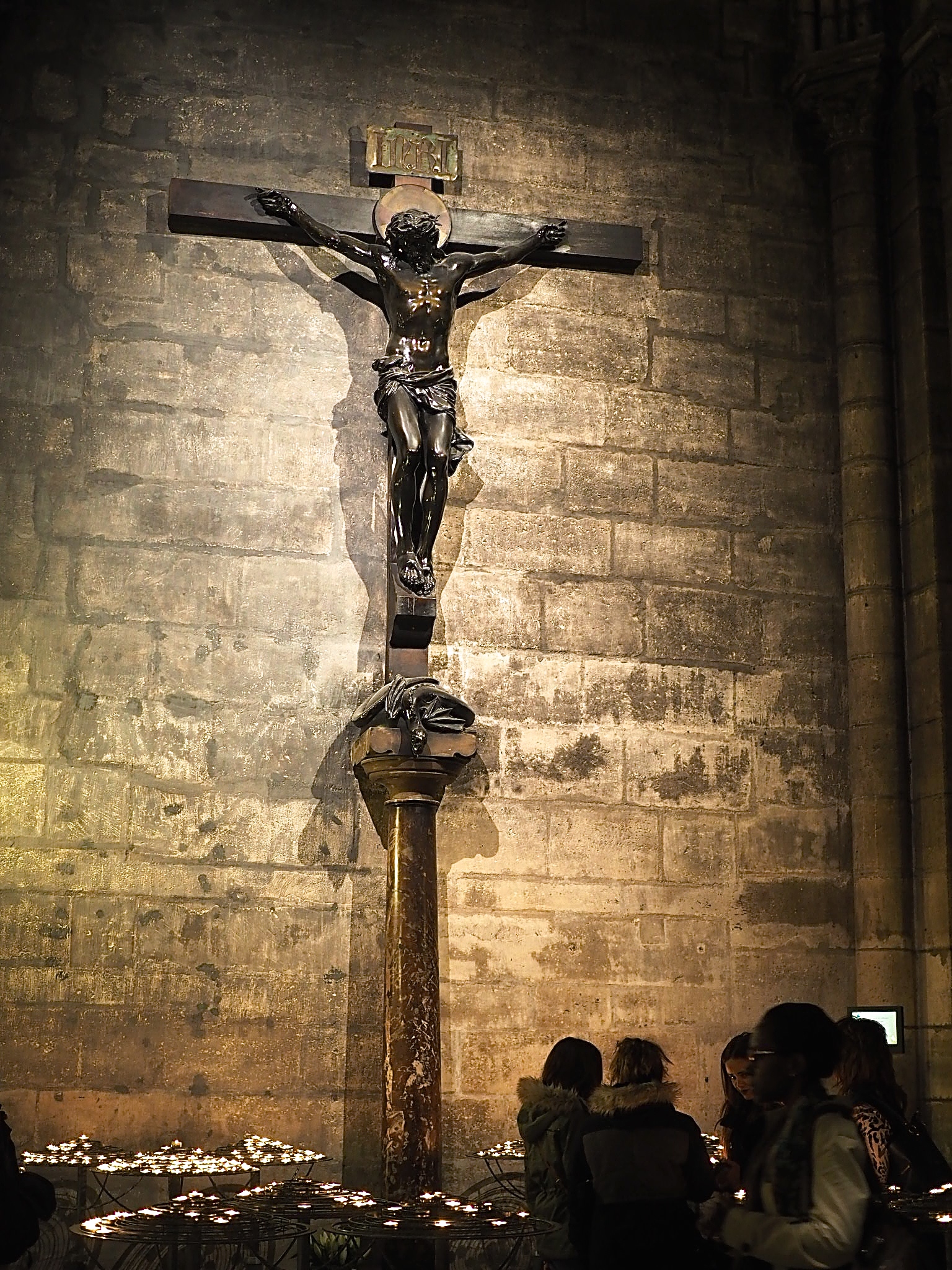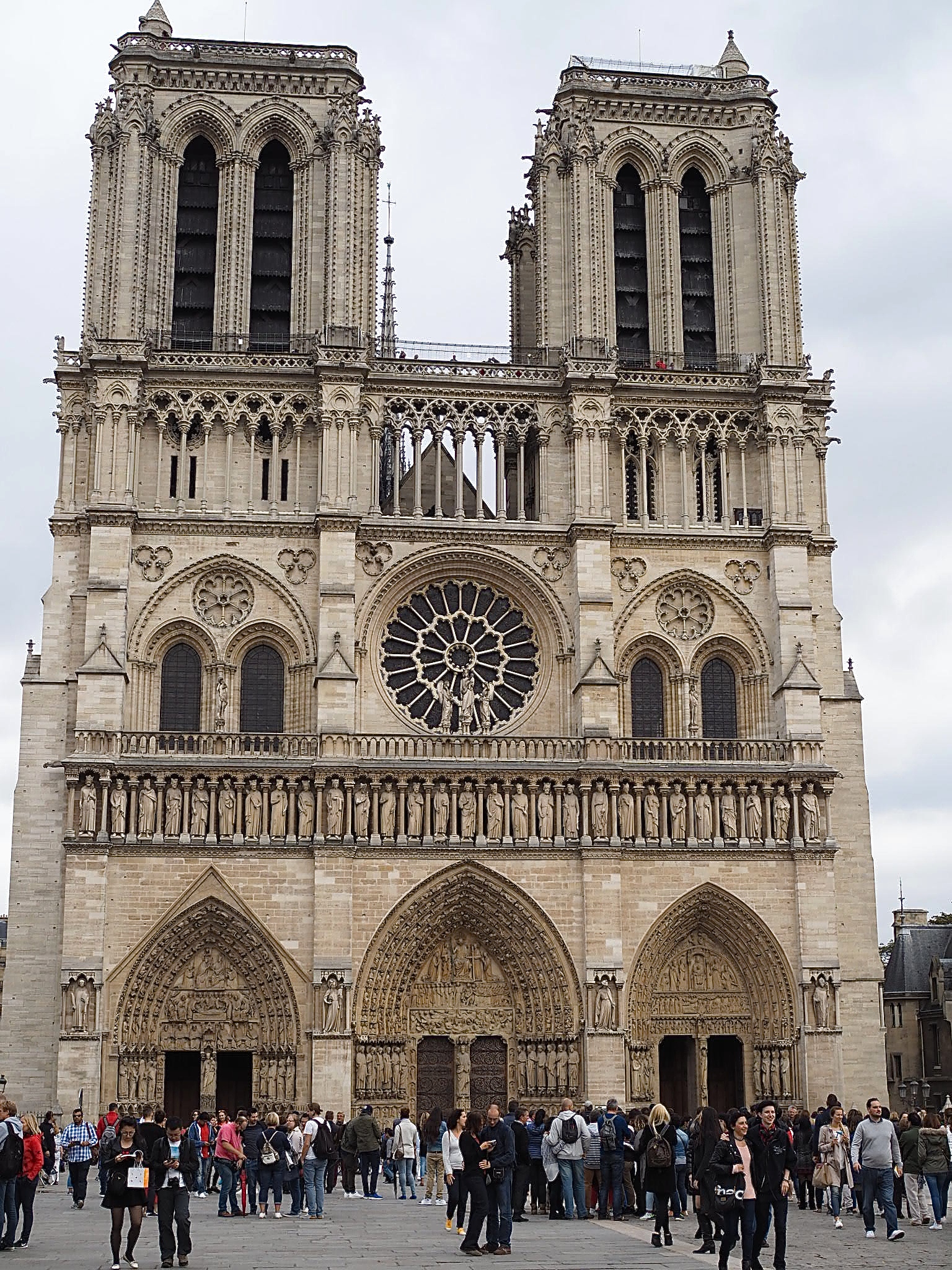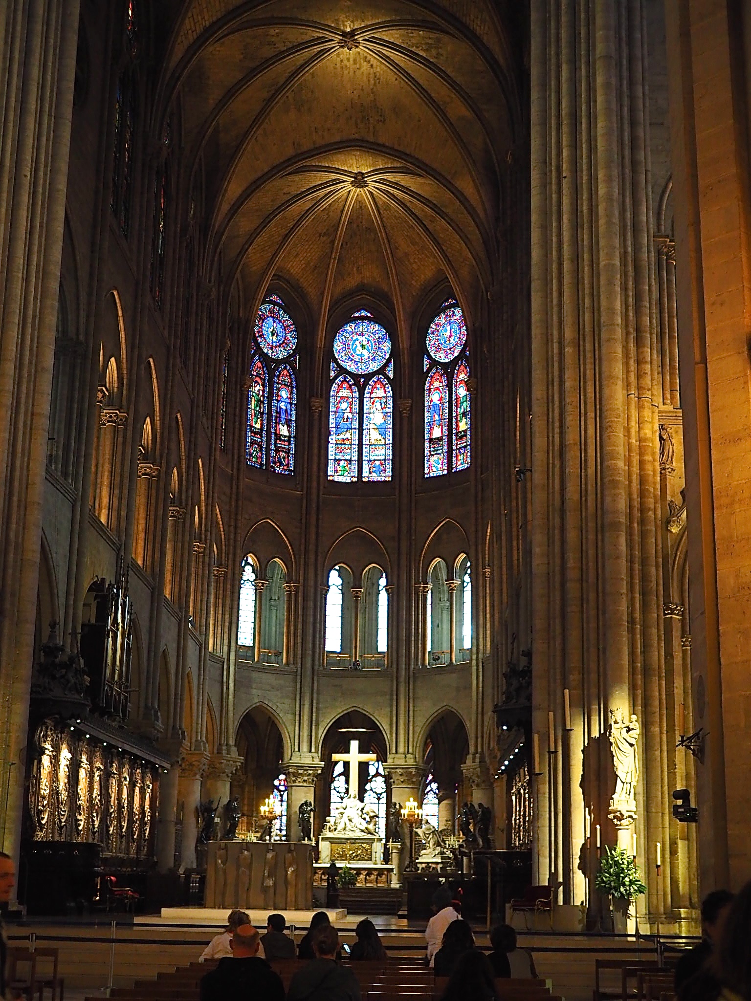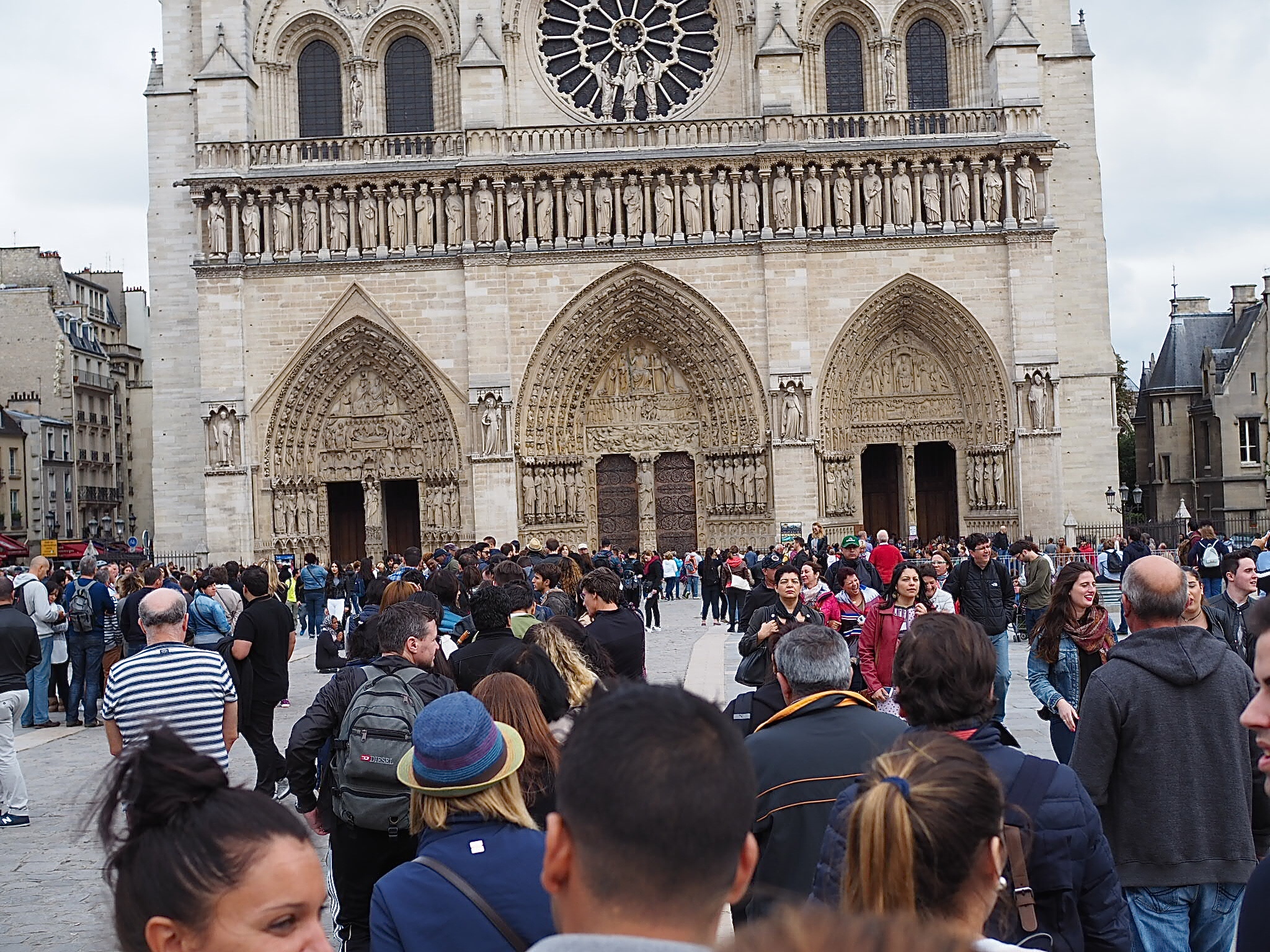 Lounaan jälkeen tarkoitukseni oli jatkaa Musée National Picassoon, mutta metroa odottaessani päätin, että nyt saa museot tältä erää riittää ja vaihdoin toiselle metrolinjalle, joka vie La Citén saarelle, jossa muun muassa Notre-Damen tuomiokirkko sijaitsee. Tuomiokirkon rakennustyöt aloitettiin vuonna 1163 ja kirkko valmistui 167 vuoden jälkeen. Kirkon edustalla joutui jälleen jonottamaan, joten hetki kului ennen kuin pääsi turvatarkastuksen läpi sisälle. Mutta kyllä kannatti jonottaa, kirkko on hyvin vaikuttava myös sisätiloiltaan.