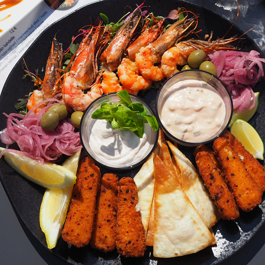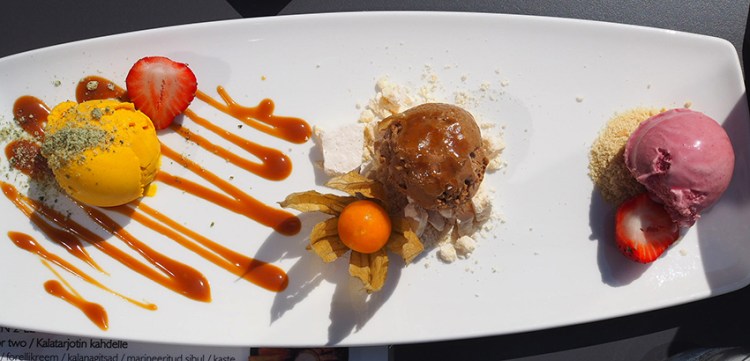 Kylpylän buffet-aamiainen oli joka aamu sama ja alkoi hieman puuduttaa muutaman aamun jälkeen. Iso plussa à la carte ravintola Kuulle, joka sijaitsi ensimmäisessä kerroksessa ja jossa ruokiin on huolella panostettu. Söimme lounaalla äyriäislautasen, joka oli runsas ja herkullinen, ja jälkiruuaksi paikan päällä valmistettua jäätelöä. Nam!