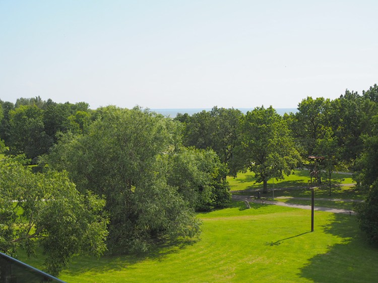 Sviitti sijaitsi 3. talon 5. kerroksessa ja tilaa oli mukavasti; sauna kylpyhuoneella, tilava makuuhuone, oleskeluhuone sekä pikku-wc. Lisäksi huoneistossa oli kaksi parveketta, joista toinen sijaitsi olohuoneen ja toinen makuuhuoneen puolella. Molemmilta parvekkeilta avautui laaja puistonäkymä ja puiden latvojen tasalla pilkotti meri. Kylpyhuone oli hieman ”kulahtanut” ja vaatii päivitystä lähitulevaisuudessa, mutta kaiken kaikkiaan Tervis on kattavine palveluineen ja ravintoloineen kokemisen arvoinen yöpymispaikka.