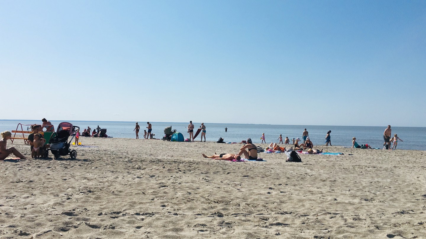 Pärnu yllätti iloisesti. Olimme varanneet sviitin Tervis-kylpylähotellista, jonka hintataso ei paljoa poikennut kahden hengen standard- tai superior-huoneesta. Lähin uimaranta sijaitsee noin 10 minuutin kävelymatkan päässä ja rannalle pääsee kätevästi hotellin takana sijaitsevan puiston poikki.
